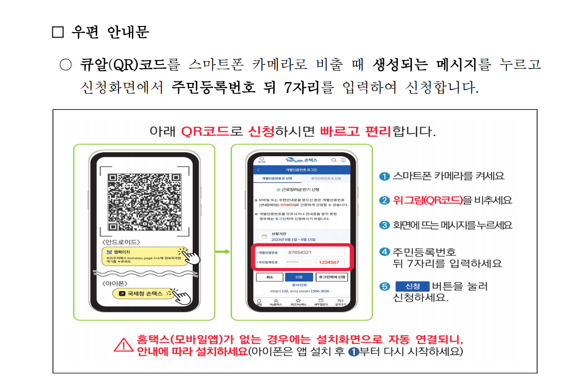 2. 우편 안내문 3. 자동응답전화 4. 홈택스(PC)