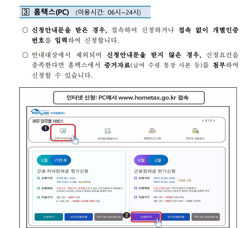 근로장려금 신청기간 및 지급일정