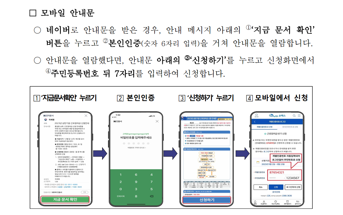 1. 모바일 안내문: 네이버로 받은 경우, 문자로 받은 경우, 국민비서 알림 메시지로 받은 경우